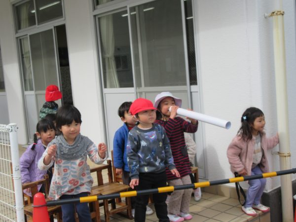 2026.2.17〈遊具のお引越し〉今日は、幼稚園にショベルカーやトラックが入り、新しい遊具を設置するために、太鼓橋を移動させる作業が行われました。いつもとは違った園庭の雰囲気に子どもたちは興味深々!!思わず「がんばって~」「ちゃいるどさ~ん(会社の名前)」を叫びながら応援!?していました。いよいよ明日新しい遊具が到着します。