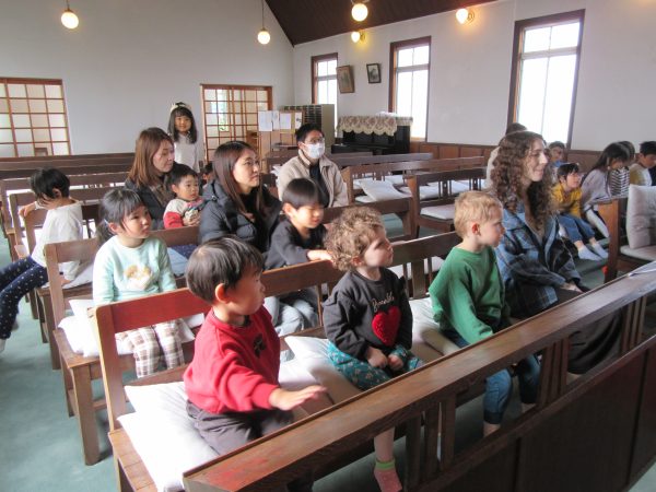 すみれ組のお兄さん・お姉さんが優しくお世話もしてくれました。神さまのおうち(教会)にも行き、短いお祈りもお献げしたよ。